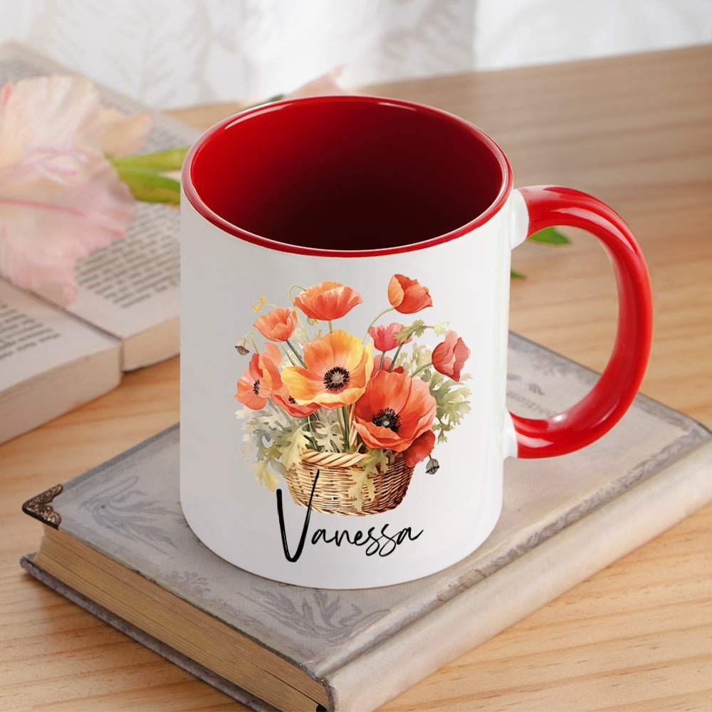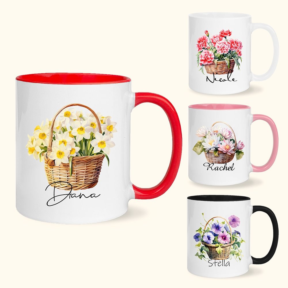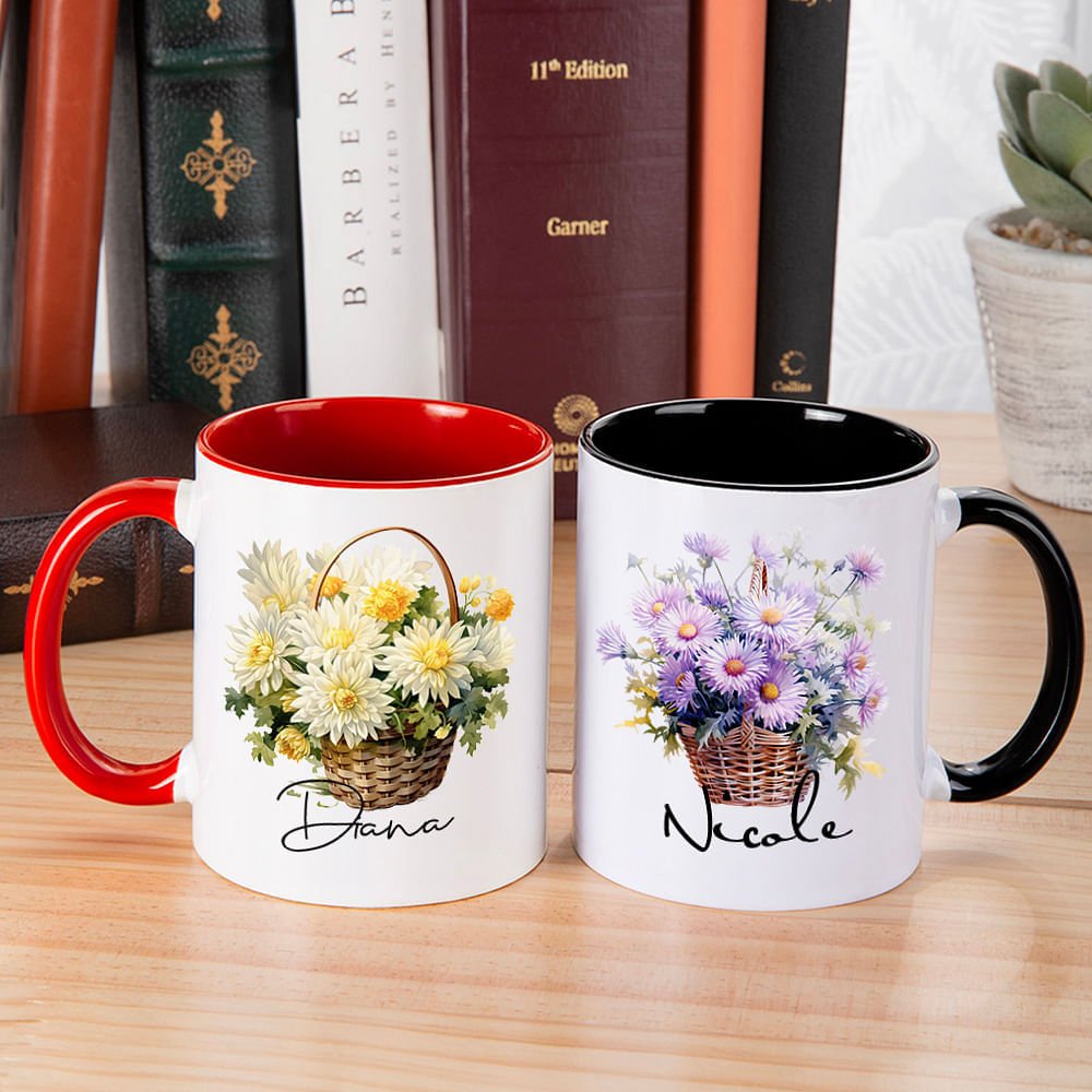 This elegant ceramic mug features a beautiful birth flower basket design, making it the perfect personalized gift for anyone who loves floral aesthetics.