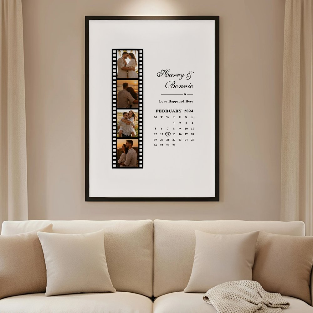 Med filmfotografier, kalendere, navn og tekst som kjerneelementer gir dette settet mulighet til å tilpasse fire bilder, sammen med dyptfølte meldinger og en minnekalender for å markere viktige datoer, og på den måten fange verdifulle øyeblikk på en perfekt måte.