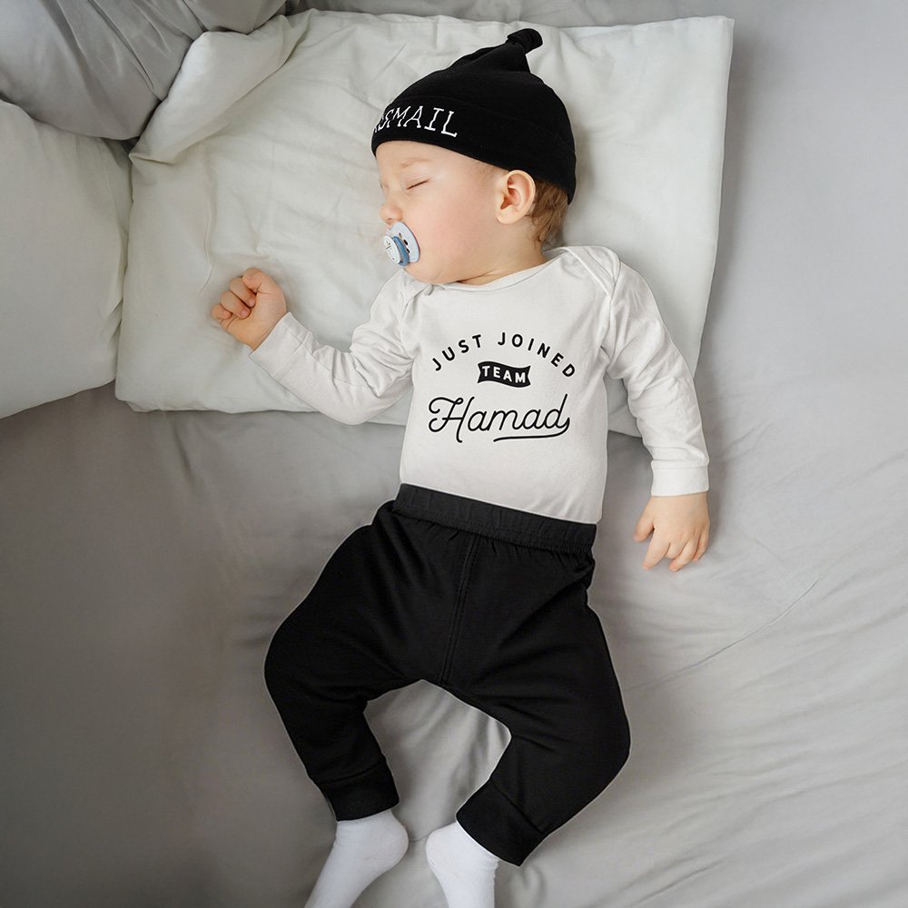 Celebrate the arrival of your newest team member with this adorable personalized outfit set! Featuring the phrase “Just Joined Team”, this design symbolizes that the baby is now officially part of the family team—a loving, supportive group united like a real sports team. It’s a heartfelt and fun way to welcome a newborn using the language of camaraderie and team spirit.