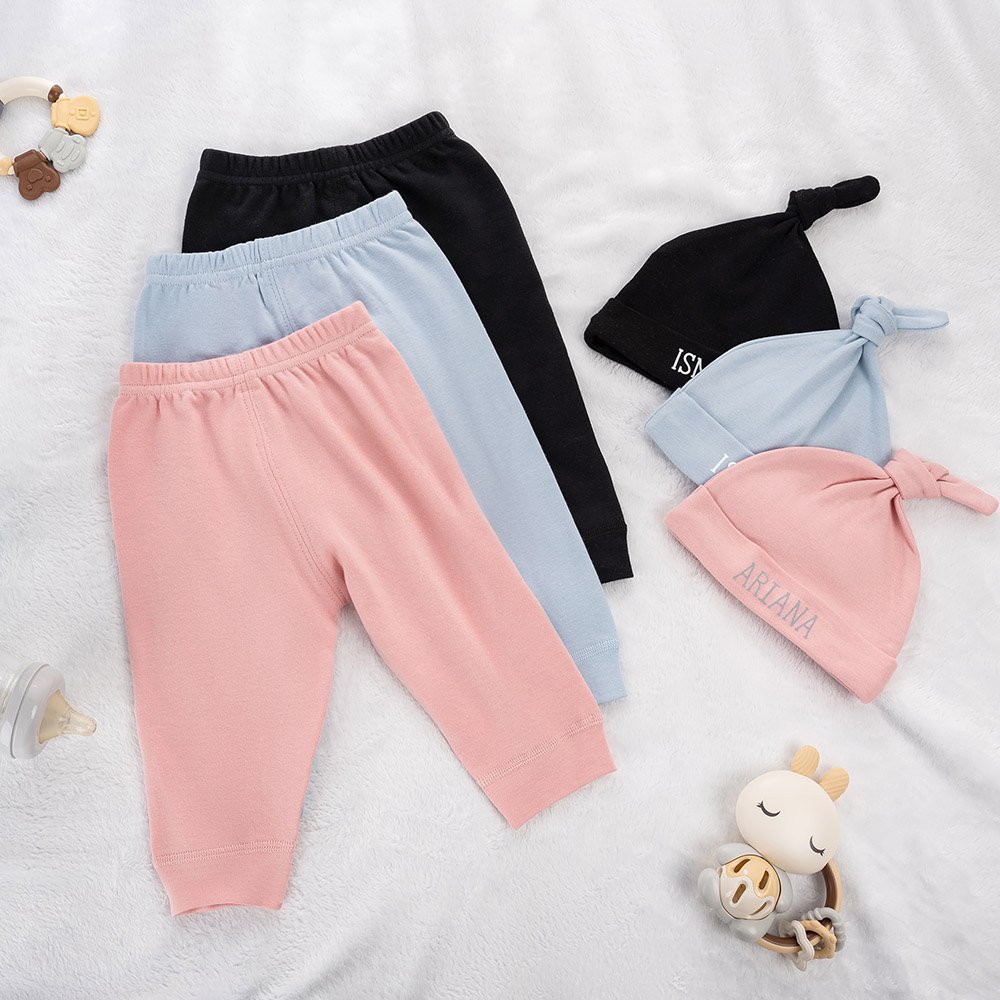 Perfect for coming home from the hospital, baby’s first photoshoot, or announcing the birth on social media. The coordinated bodysuit, knot hat, and pants create a picture-perfect look for any memorable occasion.