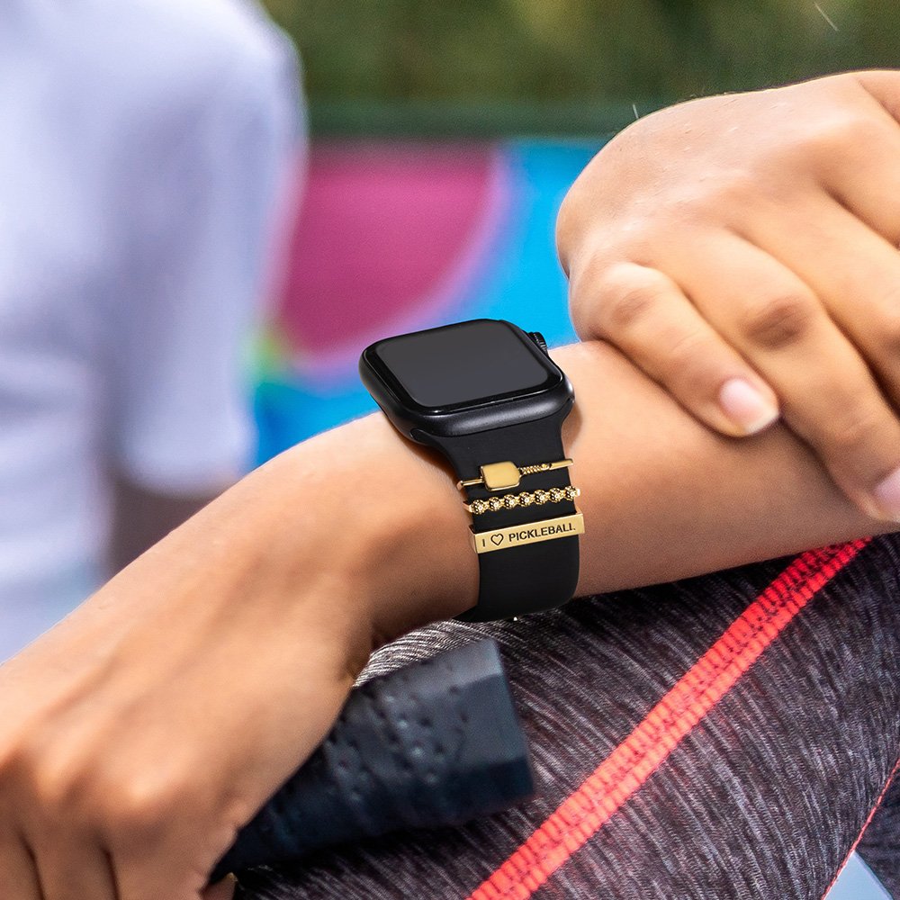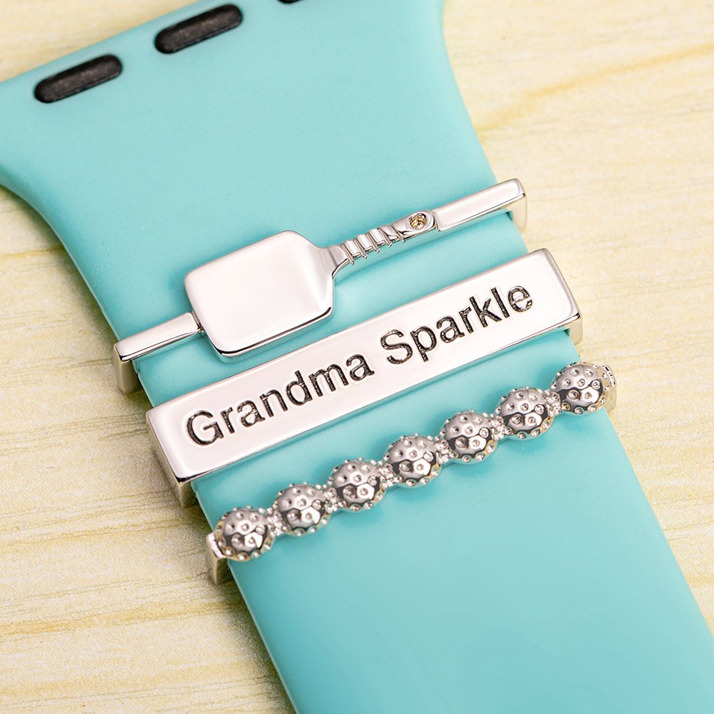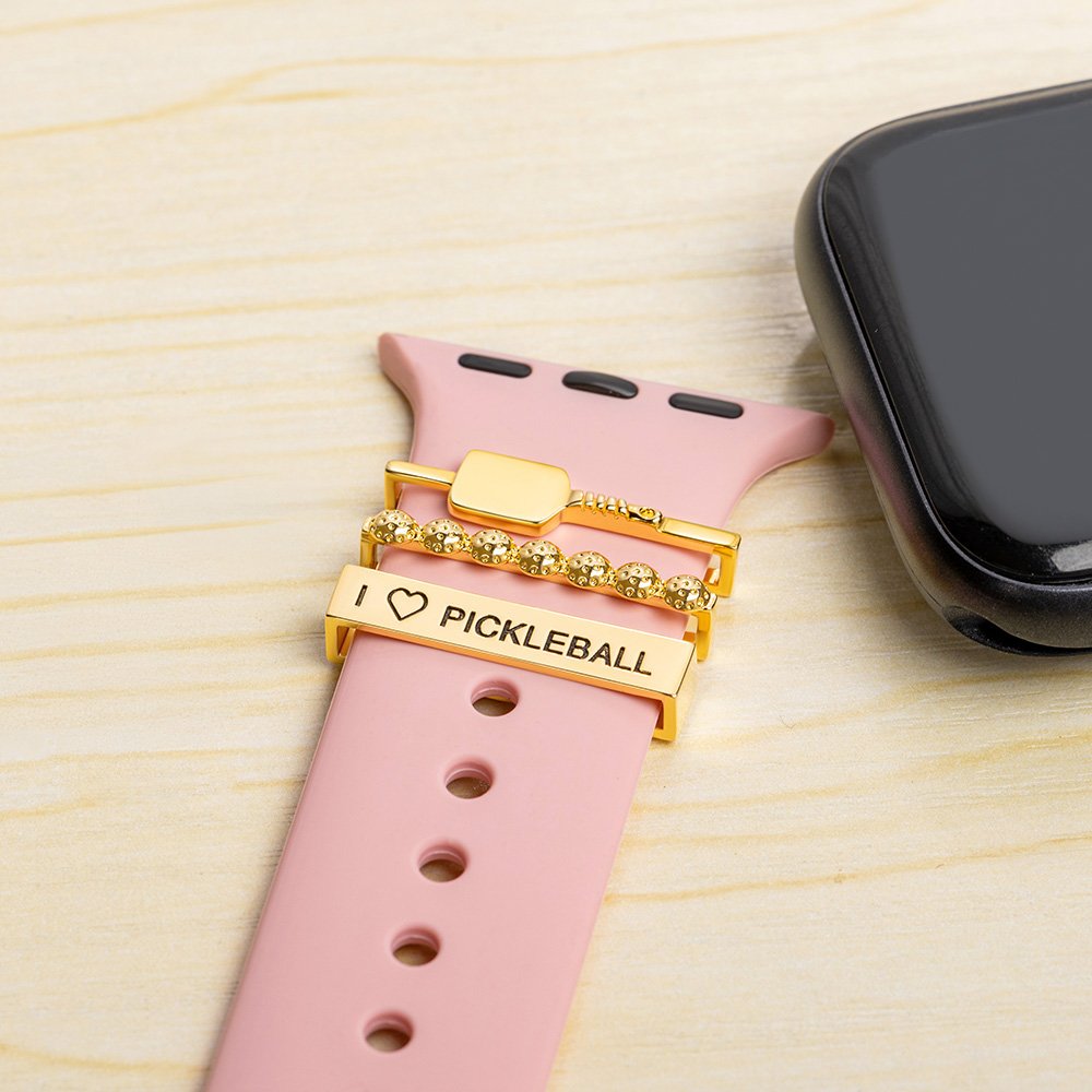 This watch band charm is simple and luxurious while serving as a stunning accessory that adds a unique touch to any watch. It comes in a three-piece set and combines pickleballs with a racket, creating an energetic and youthful atmosphere for your watch.  Featuring an engraved customized name, it perfectly showcases your personality.
